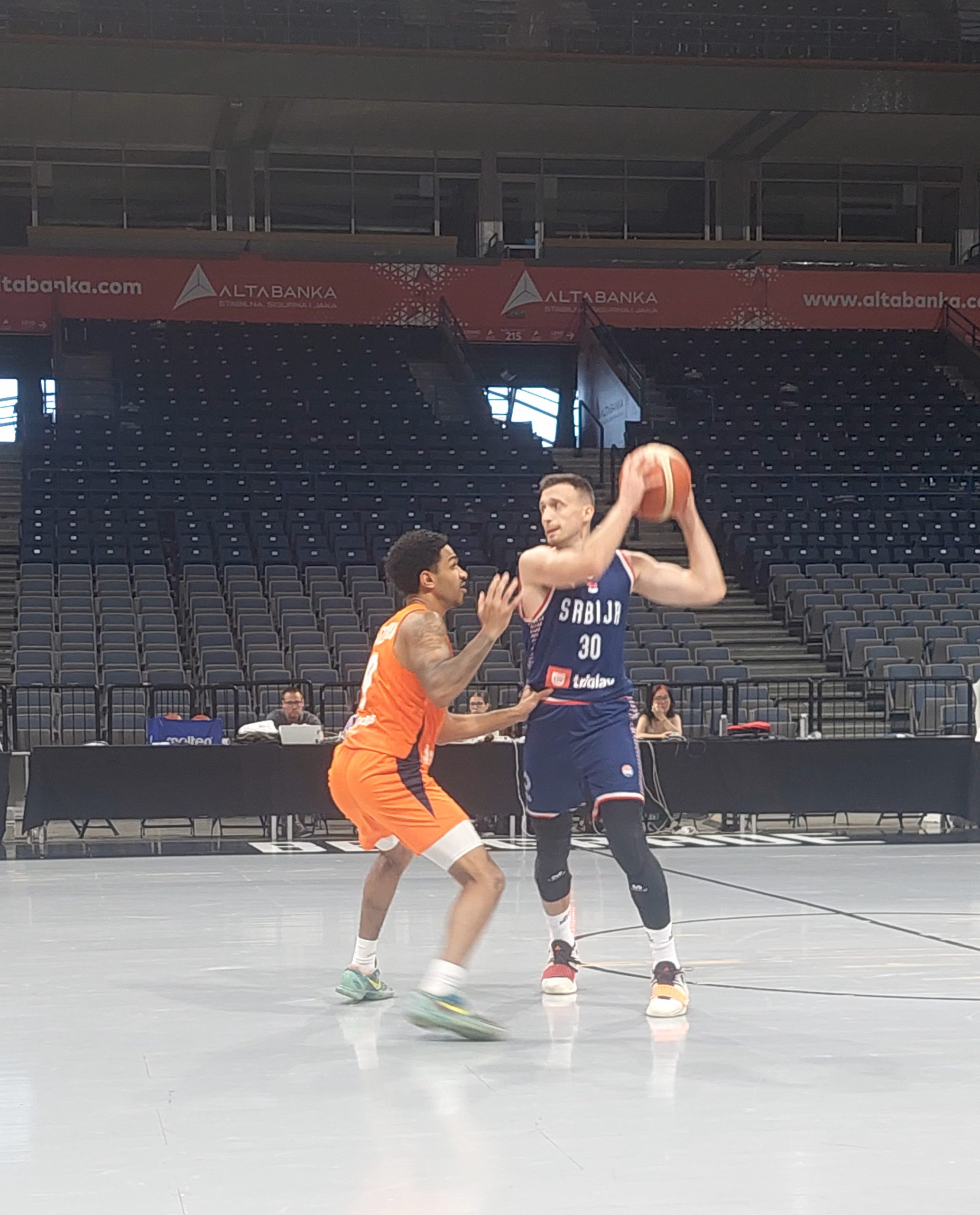 Joryam: “Ik speelde afgelopen zomer twee keer tegen België, twee keer tegen Servië en tijdens de uitzwaaiwedstrijd van wereldkampioen Duitsland. Dat is echt een ander niveau. Ik kan me nog herinneren dat ik in Servië de hal binnen kwam en daar Nikola Jokic en al die andere sterspelers zag. Dat maakte wel een flinke indruk. Tegen Duitsland moest ik Dennis Schroeder verdedigen. Dat ging best goed en gedurende de wedstrijd werd er behoorlijk wat getrashtalked en gelachen. De les die ik uit die wedstrijden trek is dat hun niveau voor mij bereikbaar is. Daar gaan natuurlijk nog wat jaren overheen, maar met hard trainen denk ik dat ik daar kan komen. Verdedigend ben ik al een heel eind, maar het schieten uit de dribbel en het benutten van de pick and roll zijn onderdelen waar ik hard aan ga werken.”