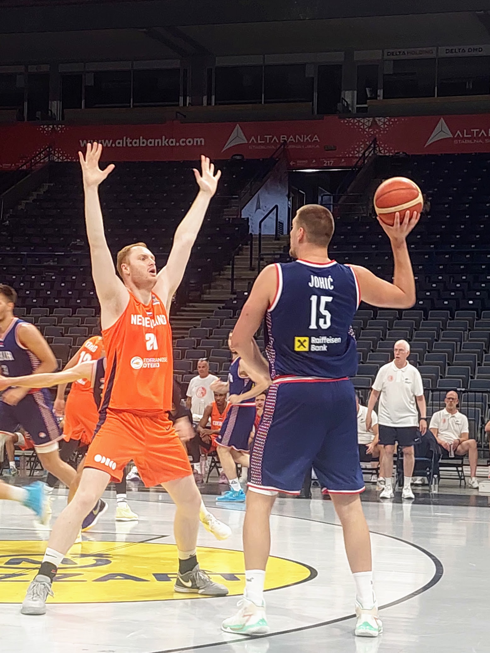 In tegenstelling met vorig seizoen ben ik niet voor het Nederlands Team geselecteerd. Coach Rooijakkers heeft me daarover gebeld en we hebben een goed gesprek gehad. Ik ben er straks in november en februari graag weer bij. Het blijft geweldig om in dat Oranje shirt op het veld het Wilhelmus te zingen, terwijl de sporthal stampvol is. Het is inspirerend om je met de besten van de wereld te mogen meten. Die twee wedstrijden in Belgrado tegen Servië waren ontzettend gaaf. Daar sta je dan opeens tegen mannen als Nikola Jokic en Bogdan Bogdanovic te spelen. Ik heb daar zoveel plezier van gehad!